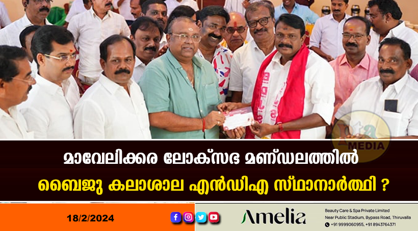 മാവേലിക്കര – കഴിഞ്ഞ നിയമസഭാ തെരഞ്ഞെടുപ്പിൽ മാവേലിക്കരയിലെ യുഡിഎഫ് സ്ഥാനാർത്ഥി ആയിരുന്ന ബൈജു കലാശാല ബിഡിജെഎസിൽ ചേർന്നു. സംസ്ഥാന അദ്ധ്യക്ഷൻ തുഷാർ വെള്ളാപ്പള്ളി ബൈജുവിന് പാർട്ടിയിലേക്ക് അംഗത്വം നൽകി. കഴിഞ്ഞ നിയമസഭാ തെരഞ്ഞെടുപ്പിൽ മാവേലിക്കരയിൽ യുഡിഎഫ് സ്ഥാനാർത്ഥിയായിരുന്നു ബൈജു. എൽഡിഎഫിന്റെ അരുൺ കുമാറിനോട് പരാജയപ്പെട്ടു. ഡിസിസി ജനറൽ സെക്രട്ടറിയായിരിക്കുമ്പോഴാണ് അന്ന് മാവേലിക്കരയിൽ മത്സരിച്ചത്. തൊട്ടുപിന്നാലെ അദ്ദേഹം പാർട്ടി വിട്ട് കേരളാ കോൺഗ്രസി(എം)ൽ ചേർന്നിരുന്നു.