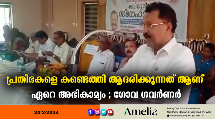 കവിയൂർ: ഗ്രാമപഞ്ചായത്ത് സംഘടിപ്പിച്ച സാഹിത്യ ശ്രേഷ്ഠർക്കുള്ള ആദരിക്കൽ ചടങ്ങ് ഗോവ ഗവർണർ പി.എസ്.ശ്രീധരൻപിള്ള ഉദ്ഘാടനം ചെയ്തു. ഇംഗ്ലീഷ് ഭാഷ അദ്ധ്യാപകനും സാഹിത്യകാരനും കൂടിയായ സി. ശാമുവേലിന്റെ ജന്മശതാബ്ദി വാർഷികത്തോടനുബന്ധിച്ച് ആണ് ഗ്രാമപഞ്ചായത്ത് സാഹിത്യ പ്രതിഭകളും കവിയൂർ നിവാസികളുമായ സി.ശാമുവേൽ, നിരവധി സാഹിത്യ പുരസ്ക്കാരങ്ങൾ നേടിയ റിട്ട.പ്രൊഫസർ കെ.പി. മാത്യു എന്നിവരെ ആദരിച്ചത്. ഗ്രാമപഞ്ചായത്ത് പ്രസിഡന്റ് എം.ഡി.ദിനേശ്കുമാർ അദ്ധ്യക്ഷത വഹിച്ചു. മാർത്തോമ്മാ സഭ അൽമായ ട്രസ്റ്റി അഡ്വ.ആൻസിൽ കോമാട്ട്, റിട്ട.പ്രോഫസർ ടി.എം. യേശുദാസൻ എന്നിവർ മുഖ്യപ്രഭാഷണങ്ങൾ നടത്തി. കേരള പെൻഷനേഴ്സ് യൂണിയൻ യൂണിറ്റ് പ്രസിഡന്റ് എം ജെ മഹേശൻ, ആർട്ടിസ്റ്റ് സാം ചാക്കോ, ഗ്രാമപഞ്ചായത്ത് വികസന കാര്യ സ്റ്റാൻഡിംഗ് കമ്മിറ്റി ചെയർമാൻ വിനോദ് തോട്ടബ്ഭാഗം, ശ്രീകുമാരി രാധാകൃഷ്ണൻ, സിന്ധു വിജയകുമാർ, കെ.ആർ.രാജശ്രി എന്നിവർ ആശംസകൾ അർപ്പിച്ചു. ഗ്രാമപഞ്ചായത്ത് വൈസ് പ്രസിഡന്റ് ശ്രീരഞ്ജിനി. എ. ഗോപി സ്വാഗതവും സെക്രട്ടറി സാം കെ സലാം കൃതജ്ഞതയും പറഞ്ഞു.