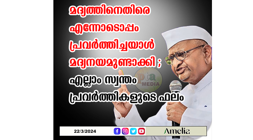 മദ്യത്തിനെതിരെ എന്നോടൊപ്പം പ്രവർത്തിച്ചയാൾ മദ്യനയമുണ്ടാക്കി ; എല്ലാം സ്വന്തം പ്രവർത്തികളുടെ ഫലം