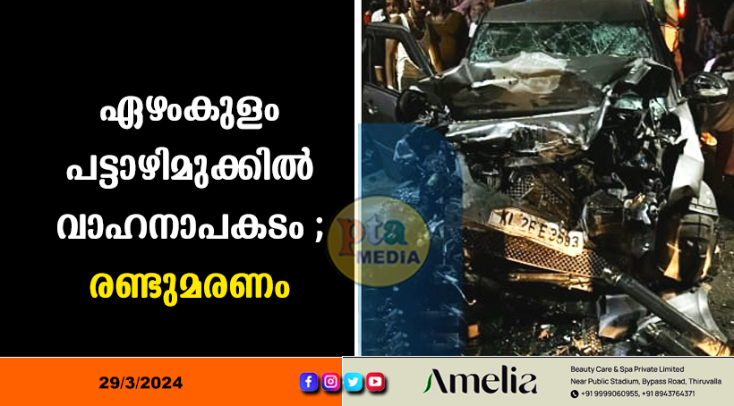 ഏഴംകുളം പട്ടാഴിമുക്കിൽ വാഹനാപകടം ; രണ്ടുമരണം