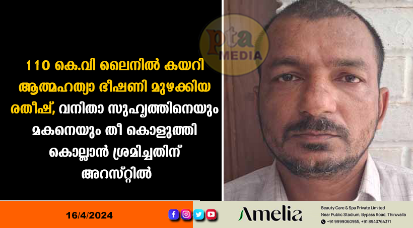 അടൂർ – ഓർമയില്ലേ ഈ രതീഷിനെ ? 110 കെ.വി. ലൈനിൽ കയറി കൈയിൽ പെട്രോൾ നിറച്ച കുപ്പിയുമായി ആത്മഹത്യാ ഭീഷണി മുഴക്കിയ ഈ പറക്കോട്ടുകാരനെ ? ഭാര്യയും ഉറ്റബന്ധുക്കളും വന്നു വിളിച്ചിട്ടും താഴെയിറങ്ങാൻ തയാറാകാതെ അർദ്ധരാത്രി ടവറിന് മുകളിൽ കയറിയിരുന്ന് വൈദ്യുതി മുടക്കുകയും പൊലീസിനെയും കെഎസഇബിയെയും വലയ്ക്കുകയും ചെയ്ത രതീഷ് അവസാനം താഴെ ഇറങ്ങാൻ തയാറായത് സുഹൃത്തായ യുവതി വന്നു വിളിച്ചപ്പോഴാണ്. ഇപ്പോൾ അതേ യുവതിയെയും മകനെയും പെട്രോൾ ഒഴിച്ച് ചുട്ടുകൊല്ലാൻ ശ്രമിച്ച കേസിൽ ഇപ്പോൾ രതീഷ് അകത്തായിരിക്കുകയാണ് !!