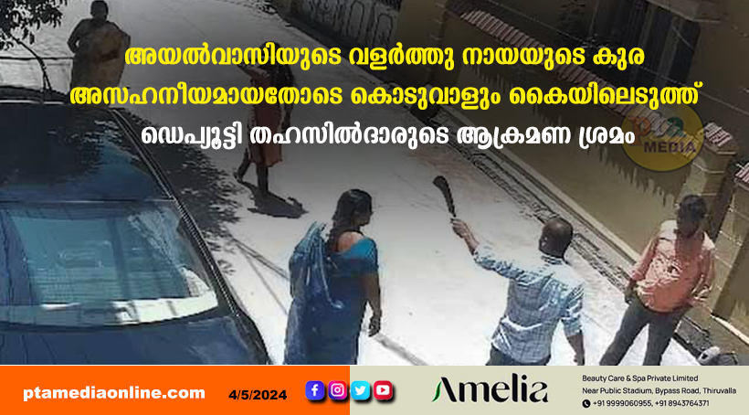അയൽവാസിയുടെ വളർത്തു നായയുടെ കുര അസഹനീയമായതോടെ കൊടുവാളും കൈയിലെടുത്ത് ഡെപ്യൂട്ടി തഹസിൽദാരുടെ ആക്രമണ ശ്രമം