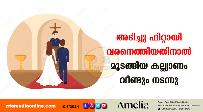 കോഴഞ്ചേരി – വിവാഹത്തിനു പള്ളിയിലെത്തിയ പ്രവാസിയായ വരൻ മദ്യപിച്ചു ഫിറ്റായി കാട്ടിക്കൂട്ടിയ പരാക്രമങ്ങളാൽ മുടങ്ങിയ വിവാഹം, മദ്ധ്യസ്ഥർ ഇടപെട്ടതിനെത്തുടർന്ന് ബുധനാഴ്ച വീണ്ടും നടന്നു. കഴിഞ്ഞ ഏപ്രിൽ 15-ന് തടിയൂരിന് സമീപത്തെ പള്ളിയിൽ നടക്കേണ്ടിയിരുന്ന വിവാഹമാണ് മുടങ്ങിയത്. തടിയൂർ സ്വദേശിയായ പ്രവാസി യുവാവും നാരങ്ങാനം സ്വദേശിനിയായ യുവതിയുമായുള്ള വിവാഹമാണ് അന്ന് നടക്കേണ്ടിയിരുന്നത്.