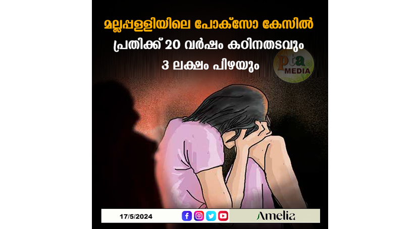 മല്ലപ്പള്ളി – ഏഴുവയസ്സുകാരിക്കെതിരെ ലൈംഗികാതിക്രമം കാട്ടിയ കേസിൽ പ്രതിക്ക് 20 വർഷം കഠിനതടവും മൂന്നു ലക്ഷം രൂപ പിഴയും ശിക്ഷിച്ച് പത്തനംതിട്ട അതിവേഗ സ്പെഷ്യൽ കോടതി. കോട്ടയം ചങ്ങനാശ്ശേരി മാടപ്പള്ളി ദൈവംപടി ഗോപാലശേരിൽ ശ്യാംകുമാർ (40) ആണ് ശിക്ഷിക്കപ്പെട്ടത്. സ്പെഷ്യൽ ജഡ്ജ് ഡോണി തോമസ് വർഗീസിന്റെതാണ് വിധി. പിഴ അടച്ചില്ലെങ്കിൽ ഒരു വർഷം കഠിനതടവ് കൂടി അനുഭവിക്കണം.പോക്സോ നിയമത്തിലെ 6,5( എം ) വകുപ്പുകൾ പ്രകാരമാണ് ശിക്ഷ വിധിച്ചത്. കീഴ്വായ്പ്പൂർ സ്റ്റേഷനിൽ 2015 ൽ അന്നത്തെ എസ് ഐ ജി സന്തോഷ് കുമാർ രജിസ്റ്റർ ചെയ്ത് അന്വേഷണം നടത്തിയ കേസിലാണ് വിചാരണ പൂർത്തിയാക്കി കോടതി വിധിപറഞ്ഞത്. പിഴത്തുക കുട്ടിയുടെ അമ്മയ്ക്ക് നൽകണമെന്നും വിധിയിൽ പറയുന്നു. 2015 ഏപ്രിൽ 15 ന് വൈകിട്ടാണ് കേസിന് ആസ്പദമായ സംഭവം.റോഡരികിൽ നിർത്തിയിട്ട ഇയാളുടെ കാറിൽ വച്ചാണ് കുട്ടിയെ പ്രതി പീഡിപ്പിച്ചത്. അന്വേഷണം പൂർത്തിയാക്കി കോടതിയിൽ കുറ്റപത്രം സമർപ്പിച്ചത് അന്ന് എസ് ഐ ആയിരുന്ന ടി ജി പുരുഷോത്തമൻ നായർ ആണ്. പ്രോസിക്യൂഷന് വേണ്ടി അഡ്വ. ജെയ്സൺ മാത്യൂസ് ഹാജരായി.
