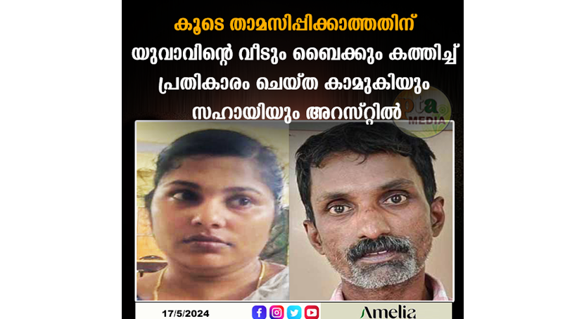 റാന്നി : ഭാര്യയുമായി പിണങ്ങിക്കഴിയുകയായിരുന്നിട്ടും തന്നെ വിളിച്ച് കൂടെ താമസിപ്പിക്കാത്തതിന്റെ വിരോധത്തില് യുവാവിന്റെ വീടും ബൈക്കും തീ വച്ചു നശിപ്പിച്ച യുവതിയും സഹായിയും അറസ്റ്റില്.