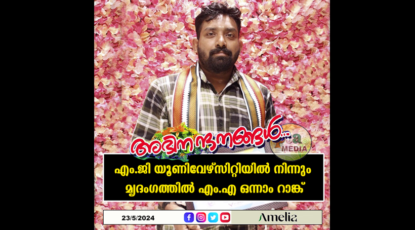 തിരുവല്ല – എം.ജി യൂണിവേഴ്സിറ്റിയിൽ നിന്നും മൃദംഗത്തിൽ എം.എ ഒന്നാം റാങ്ക് നേടിയ ആർ എൽ വി സതീഷ് എം എസ് നെ ജോയ്ആലുക്കാസ് ഫൗണ്ടേഷൻ അനുമോദിച്ചു. 2024 മെയ് 19 ന് തിരുവല്ല ജോയ്ആലുക്കാസ് ഷോറൂമിൽവച്ച് നടന്ന ചടങ്ങിൽ വിശിഷ്ട അതിഥിയായിരുന്ന കുട്ടനാട്, കൊച്ചിൻ യൂണിവേഴ്സിറ്റി കോളേജ് ഓഫ് എൻജിനിയറിങ് പ്രിൻസിപ്പാൾ പ്രൊഫ. ഡോ. ജോസഫ്ക്കുട്ടി ജേക്കബ് സർട്ടിഫിക്കറ്റ് നൽകി ആദരിച്ചു. ചെങ്ങന്നൂർ ഫയർ & സേഫ്റ്റി സ്റ്റേഷൻ ഓഫീസർ ശ്രീ. സുനിൽ ജോസഫ് അധ്യക്ഷത വഹിച്ച ചടങ്ങിൽ ശ്രീ. ഷെൽട്ടൻ വി റാഫേൽ, ശ്രീ. വിജയ് പോൾ, ശ്രീ. ജെറിൻ എം ജെ, ശ്രീ. സലിമോൻ ഫിലിപ്പ് എന്നിവർ പങ്കെടുത്തു. കീഴ്കോഴൂർ സ്വദേശികളായ സദാശിവൻ ആചാരി, ശോഭന സദാശിവൻ ദമ്പതികളുടെ മകനായ സതീഷ് ഇപ്പോൾ സാംസ്കാരിക വകുപ്പിന്റെ ഡയമണ്ട് ജൂബിലി ഫെലോഷിപ്പ് പ്രോഗ്രാമിൽ കൾച്ചറൽ ഡിപ്പാർട്മെന്റിൽ അദ്ധ്യാപകനായി സേവനമനുഷ്ഠിക്കുന്നു.