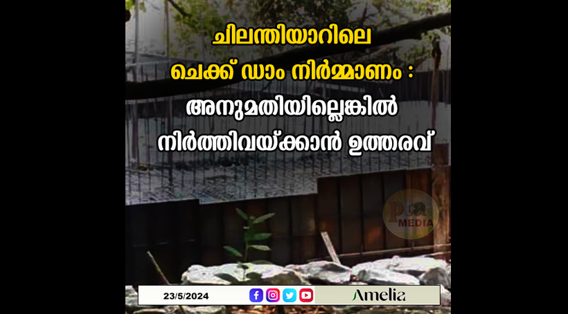 ഉത്തമപാളയം : ഇടുക്കിയിലെ വട്ടവടയ്ക്ക് സമീപം ചിലന്തിയാറിന് കുറുകെ കേരളം നിർമ്മിക്കുന്ന ചെക്ക് ഡാമിന് ബന്ധപ്പെട്ട വകുപ്പുകളിൽ നിന്ന് അനുമതി ലഭിച്ചില്ലെങ്കിൽ തുടർ പ്രവർത്തികൾ നിർത്തിവയ്ക്കാൻ ഹരിത ട്രൈബ്യൂണൽ ഉത്തരവിട്ടു. മാധ്യമ വാർത്തകളെ തുടർന്നാണ് നടപടി.