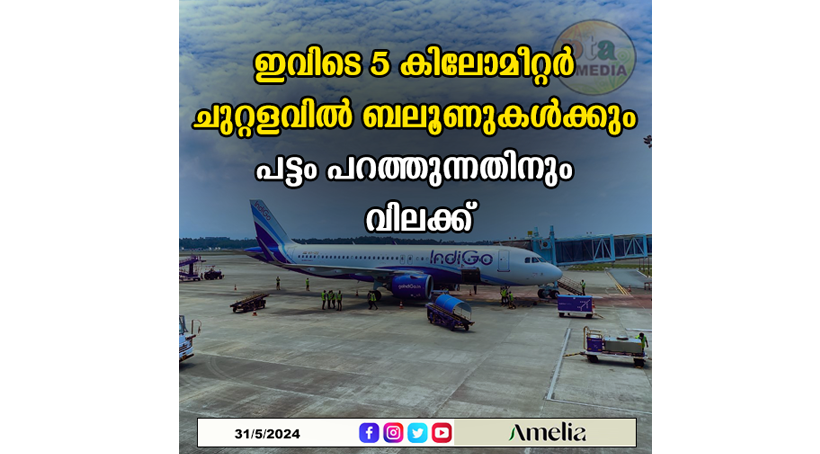 തിരുവനന്തപുരം – വിമാനത്താവള പരിസരത്ത് ബലൂണുകൾ, പട്ടം എന്നിവ പറത്തുന്നതിന് നിരോധനം.സ്കൈവേർഡ് ലേസർ ബീം ലൈറ്റുകൾ, ഹൈ റൈസർ ക്രാക്കറുകൾ ഉപയോഗിക്കാൻ പാടില്ല. 5 കിലോമീറ്റർ ചുറ്റളവിലാണ് നിരോധനം ഏർപ്പെടുത്തിയത്.ഉത്തരവ് നൽകിയത് സിറ്റി പോലീസ് കമ്മൂഷണറുടെതാണ്. വിമാന ലാൻഡിംഗ് ദിശയിലേക്ക് ലൈറ്റുകൾ മിന്നിക്കുന്നത് അപകടത്തിനിടയാക്കുമെന്ന് കണ്ടെത്തിയിരുന്നു. വ്യോമഗതാഗതത്തിലെ സുരക്ഷ മുൻ നിർത്തിയാണ് നടപടി.