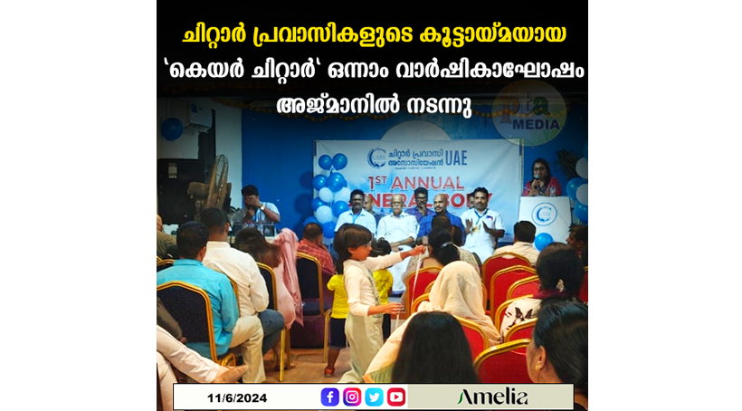 ദുബായ് : കെയർ ചിറ്റാർ പ്രവാസി അസോസിയേഷൻറെ ഒന്നാം വാർഷികം ആഘോഷിച്ചു. അജ്മാൻ മൈത്രി ഓഡിറ്റോറിയത്തിൽ നടന്ന വാർഷികാഘോഷം റാന്നി ബ്ലോക്ക് പഞ്ചായത്ത് മുൻ പ്രസിഡൻറ് എച്ച്. ഹസൻ ബാവ ഉദ്ഘാടനം ചെയ്തു. പ്രസിഡൻറ് നോബിൾ കരോട്ടുപാറ അധ്യക്ഷത വഹിച്ചു. ജനറൽ സെക്രട്ടറി ഡോ. മനു കുളത്തങ്കൽ പ്രവർത്തന റിപ്പോർട്ട് അവതരിപ്പിച്ചു. ട്രഷറർ രതീഷ് കൊച്ചുവീട്ടിൽ വരവ് ചിലവ് കണക്കുകൾ അവതരിപ്പിച്ചു. ഷാജി കൂത്താടിപറമ്പിൽ ഡേവിഡ് സി ജോർജ്, അനു സോജു ,ഷിജു പി .പി, നൗഷാദ് ഹനീഫ , അനീഷ് ഇടയിലവീട്ടിൽ, സാ ഷാദിൽ ഷാജഹാൻ, സിമി ലിജു, ഡിലു വിൻസൻറ് ജോജി തോമസ്, മാത്യു നെടുവേലിൽ എന്നിവർ പ്രസംഗിച്ചു. കുട്ടികളുടെ വിവിധ കലാപരിപാടികൾ ആഘോഷ പരിപാടികൾക്ക് നിറപ്പകിട്ടേകി. വിവിധ എമിറേറ്റുകളിൽ നിന്ന് ഇരുനൂറിലധികം പേർ വാർഷികാഘോഷ പരിപാടികളിൽ പങ്കാളികളായി. പ്ലസ് ടു ,പത്താം ക്ലാസ് പരീക്ഷകളിൽ ഉന്നത വിജയം കരസ്ഥമാക്കിയ വിദ്യാർഥികളെ അഭിനന്ദിച്ചു.