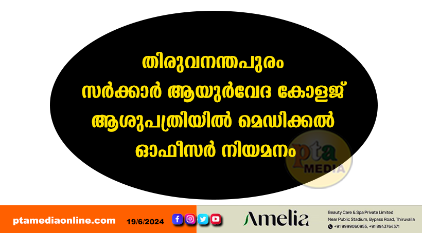 തിരുവനന്തപുരം സർക്കാർ ആയുർവേദ കോളജ് ആശുപത്രിയിൽ മെഡിക്കൽ ഓഫീസർ നിയമനം