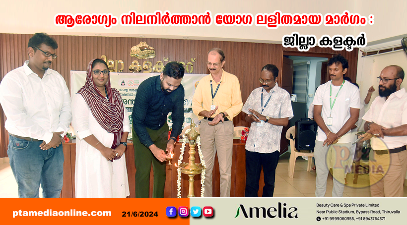 പത്തനംതിട്ട – ആരോഗ്യം നിലനിർത്താൻ ഏറ്റവും ലളിതമായ മാർഗമാണ് സ്ഥിരമായ യോഗാഭ്യാസമെന്ന് ജില്ലാ കളക്ടർ എസ്. പ്രേം കൃഷ്ണൻ പറഞ്ഞു. കേരള സർക്കാർ ആയുഷ് വകുപ്പും നാഷണൽ ആയുഷ് മിഷൻ കേരളയും സംയുക്തമായി സംഘടിപ്പിച്ച 10-ാമത് അന്താരാഷ്ട്ര യോഗ ദിനത്തിന്റെ ജില്ലാതല ഉദ്ഘാടനം കളക്ടറേറ്റ് പമ്പ ഹാളിൽ നിർവഹിച്ചു സംസാരിക്കുകയായിരുന്നു അദ്ദേഹം. ഏതു പ്രായത്തിലുള്ളവർക്കും ഏറ്റവും ലളിതമായി ചെയ്യാൻ കഴിയുന്ന വ്യായാമ മുറയാണ് യോഗ. ജീവിതശൈലി രോഗങ്ങളെ പ്രതിരോധിക്കാനും ശാരീരിക മാനസിക പിരിമുറുക്കം ഇല്ലാതാക്കാനും കൃത്യമായ യോഗ പരിശീലനത്തിലൂടെ സാധിക്കും. ആരോഗ്യ സംരക്ഷണത്തിന് യോഗ ശാസ്ത്രം ഉത്തമമാണ് എന്ന് ലോകം മുഴുവൻ അംഗീകരിച്ചു കഴിഞ്ഞു.യോഗയുടെ പ്രാധാന്യം ഈ ദിനത്തിൽ മാത്രം ഒതുക്കാതെ ജീവിത ദിനചര്യയുടെ ഭാഗമാക്കാൻ നാം ഓരോരുത്തരും ശ്രദ്ധിക്കണമെന്നും കളക്ടർ പറഞ്ഞു.