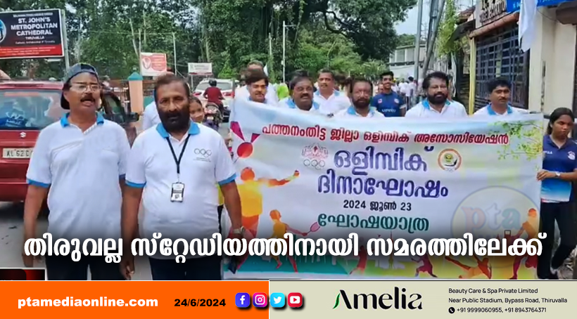തിരുവല്ല – കായിക താരങ്ങളുടെ അടിസ്ഥാന സൗകര്യങ്ങളടങ്ങിയ സ്റ്റേഡിയത്തിനായി കായിക സംഘടനകളെയും പൊതുജനങ്ങളെയും ചേർത്ത് സമരത്തിലേക്ക് പോകാനും തയ്യാറാണെന്ന് ജില്ലാ ഒളിമ്പിക്സ് അസോസിയേഷൻ പ്രസിഡന്റ് അഡ്വ.കെ പ്രകാശ് ബാബു പറഞ്ഞു. ഒളിമ്പിക്സ് ദിനാഘോഷത്തിന്റെ സമാപന സമ്മേളന വേദിയിൽ എംഎൽഎ മാത്യു ടി തോമസിന്റെ മുന്നിലായിരുന്നു ഈ പ്രഖ്യാപനം.