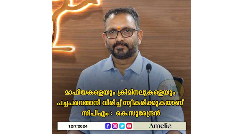 തിരുവനന്തപുരം: സിപിഎം മാഫിയകളെയും ക്രിമിനലുകളെയും പച്ചപരവതാനി വിരിച്ച് സ്വീകരിക്കുന്നതിന്റെ ഒടുവിലത്തെ ഉദാഹരണമാണ് പത്തനംതിട്ടയിൽ കാണുന്നതെന്ന് ബിജെപി സംസ്ഥാന അദ്ധ്യക്ഷൻ കെ.സുരേന്ദ്രൻ. കാപ്പാ കേസ് പ്രതിക്കും കഞ്ചാവ് കേസിൽ പിടിയിലായ പ്രതിയ്ക്കും പിന്നാലെ വധശ്രമക്കേസിൽ ഒളിവിലുള്ള പ്രതിയും സിപിഎമ്മിൽ ചേർന്നതിൽ ഒരു അത്ഭുതവുമില്ലെന്നും അദ്ദേഹം പ്രസ്താവനയിൽ പറഞ്ഞു.