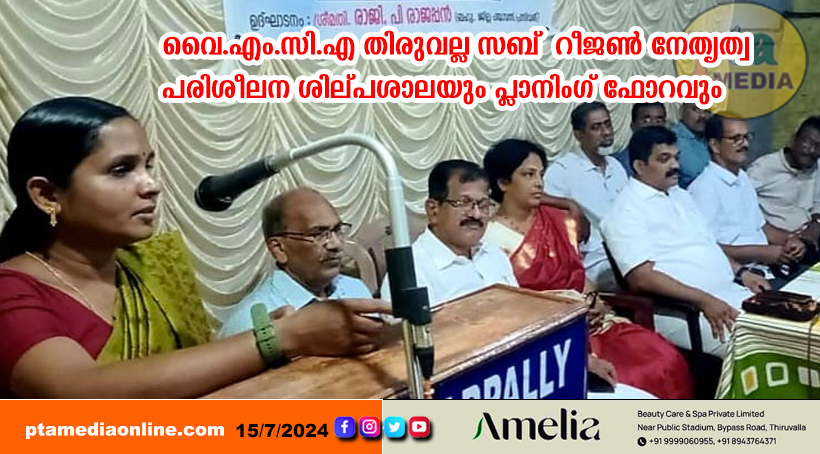 തിരുവല്ല : നേതൃത്വം പദവിയല്ല, പ്രവർത്തനമാണെന്ന് ജില്ലാ പഞ്ചായത്ത് പ്രസിഡന്റ് രാജി പി. രാജപ്പൻ പറഞ്ഞു. വൈ.എം.സി.എ സബ് – റീജൺ സംഘടിപ്പിച്ച നേതൃത്വ പരിശീലന ശില്പശാലയും പ്ലാനിംഗ് ഫോറവും മുണ്ടിയപ്പള്ളി വൈ.എം.സി.എ യിൽ ഉദ്ഘാടനം ചെയ്യുകയായിരുന്നു അദ്ദേഹം. സബ് – റീജൺ ചെയർമാൻ ജോജി പി. തോമസ് അദ്ധ്യക്ഷത വഹിച്ചു. റീജണൽ സെക്രട്ടറി ഡേവിഡ് സാമുവേൽ, വിമൻസ് ഫോറം മുൻ റീജണൽ ജനറൽ കൺവീനർ സ്റ്റെലാ തോമസ് എന്നിവർ ക്ലാസ് നയിച്ചു. സബ് – റീജൺ ജനറൽ കൺവീനർ സുനിൽ മറ്റത്ത്, മുൻ സബ് – റീജൺ ചെയർമാൻമാരായ അഡ്വ. ജോസഫ് നെല്ലാനിക്കൻ, ജോ ഇലഞ്ഞുമൂട്ടിൽ, കെ.സി മാത്യു, ലിനോജ് ചാക്കോ, സബ് – റീജൺ വൈസ് ചെയർമാൻ തോമസ് വി. ജോൺ, കൺവീനർ റോയി വർഗീസ്, വൈ.എം.സി.എ പ്രസിഡൻ്റ് കുര്യൻ ജോർജ്, റവ. ഇ.ജി കുരുവിള, കെ.ജെ യോഹന്നാൻ, ഇ.ജി ജോൺ എന്നിവർ പ്രസംഗിച്ചു. സജി മാമ്പ്രകുഴിയിൽ, റോയ് വർഗീസ്, സി.ജി ഫിലിപ്പ്, ഡോ. കെ.വി തോമസ്, ശാന്തി വിൽസൺ, എന്നിവർ പദ്ധതികൾ അവതരിപ്പിച്ചു.