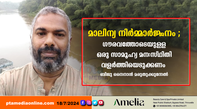 തിരുവല്ല – നമ്മുടെ സംസ്ഥാനത്തെ മാലിന്യ നിർമാർജന പ്രവർത്തനങ്ങളിൽ ഇനിയും വളരെയധികം പുരോഗതി പ്രാപിക്കേണ്ടതുണ്ട്. സ്വന്ത സ്ഥലത്തെ മാലിന്യങ്ങൾ ജലസ്രോതസുകളും അഴുക്കുചാലുകളും അടക്കമുള്ള പൊതുസ്ഥലങ്ങളിലോ അല്ലെങ്കിൽ മറ്റുള്ളവരുടെ സ്ഥലങ്ങളിലേക്കോ വലിച്ചെറിയുന്ന പ്രവണത ഇന്നും വ്യാപകമാണ് പൊതുജനങ്ങളുടെ ഇടയിൽ ശക്തമായ ബോധവത്കരണ പ്രവർത്തനങ്ങൾ ഇനിയും തുടരേണ്ടി യിരിക്കുന്നു. മാലിന്യസംസ്കരണത്തെ ഗൗരവത്തോടും ഉത്തരവാദിത്വബോധത്തോടും സമീപിക്കുന്ന ഒരു സാമൂഹ്യ മനഃസ്ഥിതി പ്രബുദ്ധ കേരളം ഇനിയും വളർത്തിയെടുക്കേണ്ടതുണ്ട്. അതോടൊപ്പം തദ്ദേശ സ്വയംഭരണ സ്ഥാപനങ്ങളും സംസ്ഥാന സർക്കാരും കൂടുതൽ സംവിധാനം ഏർപ്പെടുത്തേണ്ടതുമുണ്ട്