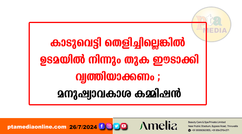 തിരുവല്ല: വള്ളംകുളത്തെ വീടുകൾക്കും സ്വത്തിനും ഭീഷണിയാകുന്ന വൃക്ഷങ്ങളും കാടുകളും വെട്ടിമാറ്റി ഇഴജന്തുക്കളുടെ ആക്രമണം തടയാൻ വസ്തു ഉടമ നടപടിയെടുത്തില്ലെങ്കിൽ വില്ലേജ് ഓഫീസർ നടപടിയെടുക്കണമെന്നും ഇതിന് ചെലവാകുന്ന തുക നിയമാനുസരണം ഉടമയിൽ നിന്ന് ഈടാക്കണമെന്നും മനുഷ്യാവകാശ കമ്മിഷൻ അംഗം വി.കെ. ബീനാകുമാരി. പ്രദേശവാസികൾ നിരവധി തവണ പരാതി നൽകിയിട്ടും നടപടിയുണ്ടാകാത്തതിനെ തുടർന്നാണ് വള്ളംകുളം സ്വദേശികളായ എസ്.കെ പ്രസന്നകുമാറും ജൂബി ആർ. വർഗീസും കമ്മീഷനെ സമീപിച്ചത്.