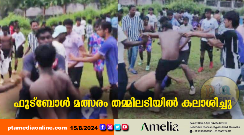 കുമ്പനാട് : ഇരവിപേരൂരിലെ ഫുട്ബോൾ ഫൈനൽ മത്സരശേഷം മൈതാനത്ത് വിദ്യാർഥികൾ തമ്മിൽ കൂട്ടയടി. ഫുട്ബോൾ മത്സരത്തെ ചൊല്ലിയാണ് വിദ്യാർഥികൾ തമ്മിലടിച്ചത്. ഇരവിപേരൂർ സെന്റ് ജോൺസ് സ്കൂൾ മൈതാനത്താണ് സംഭവം. കോഴഞ്ചേരി ഉപജില്ല ഫുട്ബോൾ മത്സരത്തിലൈ ഫൈനലിന് ശേഷമായിരുന്നു തമ്മിലടി. കോഴഞ്ചേരി സെന്റ് തോമസ്, കടമ്മനിട്ട ഹയർസെക്കൻഡറി സ്കൂൾ എന്നിവിടങ്ങളിലെ കുട്ടികളാണ് കഴിഞ്ഞ ദിവസം വൈകുന്നേരം അഞ്ച് മണിയോടെ പരസ്പരം പോരടിച്ചത്. മത്സരത്തിൽ വിജയം കോഴഞ്ചേരി സെന്റ് തോമസ് സ്കൂൾ ടീമിനായിരുന്നു. തുടർന്നുണ്ടായ വാക്കുതർക്കം കൈയാങ്കളിയിലെത്തുകയായിരുന്നു. നിരവധി വിദ്യാർത്ഥികൾക്ക് പരിക്കേറ്റു.