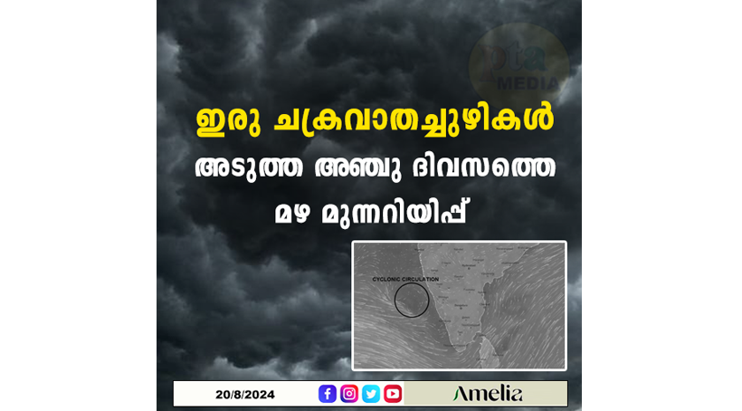 ഇരു ചക്രവാതച്ചുഴികൾ ; അടുത്ത അഞ്ചു ദിവസത്തെ മഴ മുന്നറിയിപ്പ്