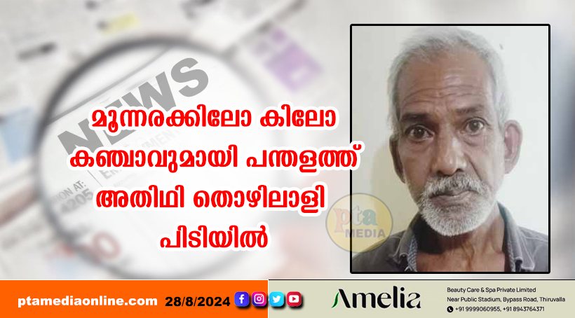പന്തളം: മൂന്നര കിലോ കഞ്ചാവുമായി അതിഥി തൊഴിലാളി പോലീസ് പിടിയില്. കഞ്ചാവ് കടത്തുസംഘത്തിലെ മുഖ്യകണ്ണിയായ പശ്ചിമബംഗാള് ജല്പൈഗുരി സ്വദേശി നഹേന്ദ്ര മൊഹന്തിന്റെ മകന് കാശിനാഥ് മൊഹന്ത് (56 ) ആണ് അറസ്റ്റിലായത്. കടക്കാട് തെക്ക് ഭാഗത്തെ ലേബര് ക്യാമ്പിന് സമീപത്തു നിന്നാണ് ഇയാളെ കസ്റ്റഡിയിലെടുത്തത്. ലഹരി വസ്തുക്കളുടെ കടത്തിനും വില്പ്പനക്കുമേതിരെ ജില്ലയില് കര്ശനമായ പോലീസ് തുടര്ന്നു വരുന്നതോനിടെയാണ് കഞ്ചാവ് വേട്ട. ജില്ലാ പോലീസ് മേധാവി എസ് സുജിത് ദാസ്സിന്റെ നിര്ദേശപ്രകാരം ഓപ്പറേഷന് ഡി ഹണ്ട് എന്ന പേരില് അതിഥിതൊഴിലാളികള് താമസിക്കുന്ന ക്യാമ്പുകളും സ്കൂള് പരിസരങ്ങളടക്കമുള്ള മേഖലകള് കേന്ദ്രീകരിച്ചും ജില്ലയില് പരിശോധന നടന്നു വരികയാണ്.