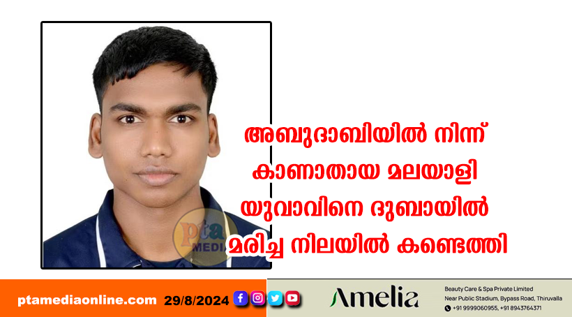 മെയ് 15 മുതല് കാണാതായ ഡിക്സനെ പോലീസും ബന്ധുക്കളും അന്വേഷിച്ചുവരികയായിരുന്നു. അബുദാബിയിലെ ഒരു ഇലക്ട്രോണിക്സ് കടയില് വാച്ച് മേക്കറായി ജോലി ചെയ്യുകയായിരുന്നു ഡിക്സണ്.കൂടുതല് വിവരം അന്വേഷിച്ചു വരുന്നു