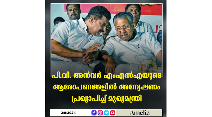 പി.വി. അൻവർ എംഎൽഎയുടെ ആരോപണങ്ങളിൽ അന്വേഷണം പ്രഖ്യാപിച്ച് മുഖ്യമന്ത്രി പിണറായി വിജയൻ.