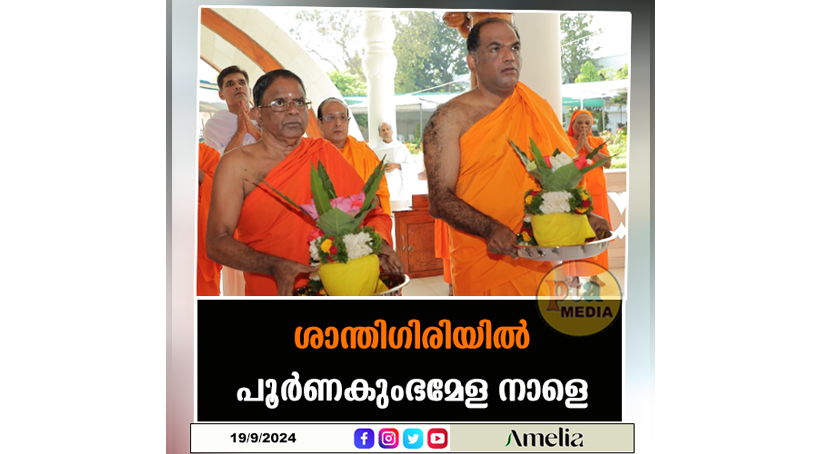 പോത്തൻകോട് : നവപൂജിതം ആഘോഷങ്ങളുടെ സമർപ്പണമായി നാളെ ( 20/09/2024 വെളളിയാഴ്ച) ശാന്തിഗിരി ആശ്രമത്തിൽ പൂർണകുംഭമേള നടക്കും. ആശ്രമം സ്ഥാപകഗുരു നവജ്യോതിശ്രീ കരുണാകരഗുരുവിന്റെ ആത്മീയ അവസ്ഥാ പൂർത്തീകരണം നടന്ന 1973 കന്നി 4 നെ അനുസ്മരിച്ചുകൊണ്ടുള്ള ചടങ്ങാണ് പൂർണകുംഭമേള. താമരപർണ്ണശാലയിൽ ആശ്രമം പ്രസിഡന്റ് സ്വാമി ചൈതന്യ ജ്ഞാന തപസ്വിയും ജനറൽ സെക്രട്ടറി സ്വാമി ഗുരുരതനം ജ്ഞാന തപസ്വിയും ചേർന്ന് ആശ്രമകുംഭം നിറച്ചതോടെ ഇത്തവണത്തെ പ്രാർത്ഥനാ ചടങ്ങുകൾക്ക് തുടക്കമായി .