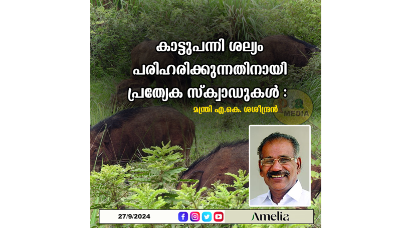 കാട്ടുപന്നി ശല്യം പരിഹരിക്കുന്നതിനായി പ്രത്യേക സ്‌ക്വാഡുകൾ : മന്ത്രി എ.കെ. ശശീന്ദ്രൻ