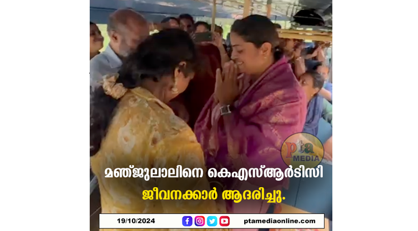 പത്തനംതിട്ട :- മികച്ച വിവരാവകാശ പ്രവർത്തകക്കുള്ള കേരള ജന വേദിയുടെ കാരുണ്യ പുരസ്കാരം നേടിയ കെഎസ്ആർടിസി ജീവനക്കാരി കൂടിയായ മഞ്ജുലാലിനെ പത്തനംതിട്ട കെഎസ്ആർടിസിയിലെ വനിതാ ജീവനക്കാർ പൊന്നാട അണിയിച്ച് ആദരിച്ചു. ആര്യ ശ്രീനിവാസൻ ആദരിക്കൽ ഉത്ഘാടനം ചെയ്തു പൊന്നാട അണിയിച്ചു. ശ്രീ മോൾ അദ്ധ്യക്ഷത വഹിച്ചു. സിന്ധു ട, ബിജോയി റാണി, സംഗീത, ചരിത്ര, ഗിരിജ, ആശ പി.സോമൻ എന്നിവർ പ്രസംഗിച്ചു. ഇനി എല്ലാ വർഷവും കേരള ജന വേദി വർഷം തോറും അവാർഡുകൾ നൽകുമ്പോൾ ഒരു കെ.എസ്.ആർ.ടി. കണ്ടക്ടറെ പരിഗണിയ്ക്കുമെന്നു കേരള ജന വേദി സംസ്ഥാന പ്രസിഡന്റ് റഷീദ് ആനപ്പാറ അറിയിച്ചു.