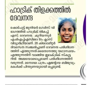 മെഴുവേലി – നാടിന്റെ അഭിമാനമായ ഈ കായികതാരത്തെ വാക്കുകളിലൂടെയെങ്കിലും ഒന്ന് അഭിനന്ദിച്ചോട്ടെ, ദേവനന്ദ എന്ന ഈ മിടുക്കി എന്റെ സഹപാഠിയുടെ മകൾ കൂടിയാണ്. ഇപ്പോൾ പത്രവിതരണക്കാരനായ കുറിയാനിപ്പള്ളിക്കാരൻ ഡി ബിജുവിന്റെ മകൾ. തുടർച്ചയായി 3 കിലോ ഷോട്ട് പുട്ട് വിഭാഗത്തിൽ മൂന്നുവർഷവും ഗോൾഡ് മെഡൽ. രണ്ടു വർഷമായി ഡിസ്ക്കസ്ത്രോയിൽ 1 കിലോ വിഭാഗത്തിൽ ഗോൾഡ് മെഡൽ, ഹാമർത്രോയിൽ 3 കിലോ വിഭാഗത്തിൽ ഗോൾഡ് മെഡൽ, കേരളാ നെറ്റ് ബോൾ 2023 – 24 ഗോൾഡ് വിന്നർ, കേരളാ ടെന്നികിറ്റിൽ മൂന്ന് വർഷമായി വിന്നർ, കേരളാ ബാസ്ക്കറ്റ്ബോളിൽ രണ്ടു വർഷമായി വിന്നർ, കേരളാ സ്റ്റേറ്റ് വടംവലിയിൽ മൂന്നു വർഷമായി വിന്നർ, സ്കൂൾ ജില്ലാതല വിജയങ്ങൾ കൂടാതെയാണിതൊക്കെ. അഭിനന്ദിക്കേണ്ടേ ?