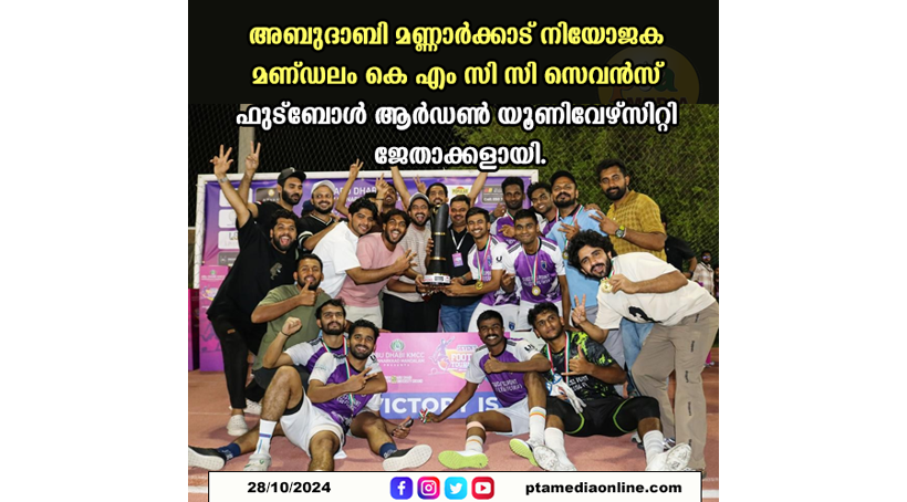 ഫോട്ടോ1 : അബുദാബി മണ്ണാർക്കാട് നിയോജക മണ്ഡലം കെ എം സി സി സെവൻസ് ഫുട്ബോളിൽ ജേതാക്കളായ ആർഡൺ യൂണിവേഴ്സിറ്റി.