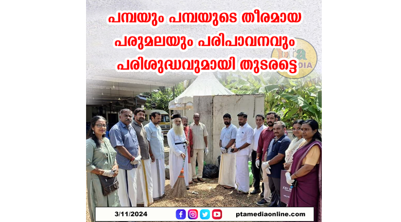 പരുമല – പമ്പാ തീരത്തുള്ള ആദ്ധ്യാത്മിക- സാംസ്ക്കാരിക – കേന്ദ്രങ്ങളിൽ ശുചീകരണ പ്രവർത്തനങ്ങളും മറ്റും ലക്ഷ്യമാക്കി പത്തനംതിട്ട ജില്ലയിൽ പരിസ്ഥിതി സംരംക്ഷണ സമിതിയുടെ നേതൃത്വത്തിൽ വിവിധ സംഘടനകളുടെ സഹകരണത്തോടെ ” നമാമി പമ്പ ” കൂട്ടായ്മയുടെ ഭാഗമായി പമ്പാ തീരത്തെ ആയിരകണക്കിന് തീർത്ഥാടകർ എത്തിച്ചേരുന്ന തീർത്ഥാടന കേന്ദ്രമായ പരുമല പള്ളിയിൽ ഇന്ന് ജോയ് ആലുക്കാസ് ഫൗണ്ടേഷൻ, തപസ്യ കലാ സാഹിത്യ വേദി, മാന്നാർ സൗഹൃദ വേദി എന്നീ കൂട്ടായ്മകളുടെ സഹകരണത്തോടെ തീർത്ഥാടന ശേഷമുള്ള പള്ളിയങ്കണം ശുചീകരിച്ചു .