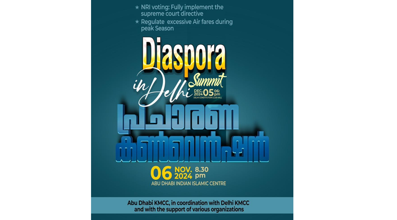 അബുദാബി : അബുദാബി സംസ്ഥാന കെഎംസിസിയുടെ നേതൃത്വത്തിൽ പ്രവാസി വിമാനയാത്ര നിരക്ക്, പ്രവാസി വോട്ടവകാശം തുടങ്ങിയ സുപ്രധാന വിഷയങ്ങൾ മുൻനിർത്തി ഡിസംബർ അഞ്ചിന് ഡൽഹിയിൽ സംഘടിപ്പിക്കുന്ന ‘ഡയസ്പോറ സമ്മിറ്റ് ഇൻ ഡൽഹി’ യുടെ യു എ ഇ തലത്തിലുള്ള പ്രചരണ കൺവെൻഷൻ നാളെ വൈകുന്നേരം 8.30 നു അബുദാബി ഇന്ത്യൻ ഇസ്ലാമിക സെന്ററിൽ വെച്ച് നടക്കും. യുഎഇലെ മുപ്പതിൽപരം പ്രവാസി സംഘടനകളുടെ സഹകരണത്തോടെയാണ് പരിപാടി സംഘടിപ്പിക്കുന്നത്.ഡൽഹിയിൽ നടക്കുന്ന സമ്മിറ്റിൽ കേരളത്തിൽ നിന്നുള്ള എം പി മാർ, മന്തിമാർ തുടങ്ങിയവർ പങ്കെടുക്കും. നേരത്തെ നടത്താൻ ഉദ്ദേശിച്ചിരുന്ന പരിപാടി ‘വയനാട് ദുരന്ത പശ്ചാത്തലത്തിൽ ഡിസംബറിലേക്കു നീട്ടിവെക്കുകയായിരുന്നു.