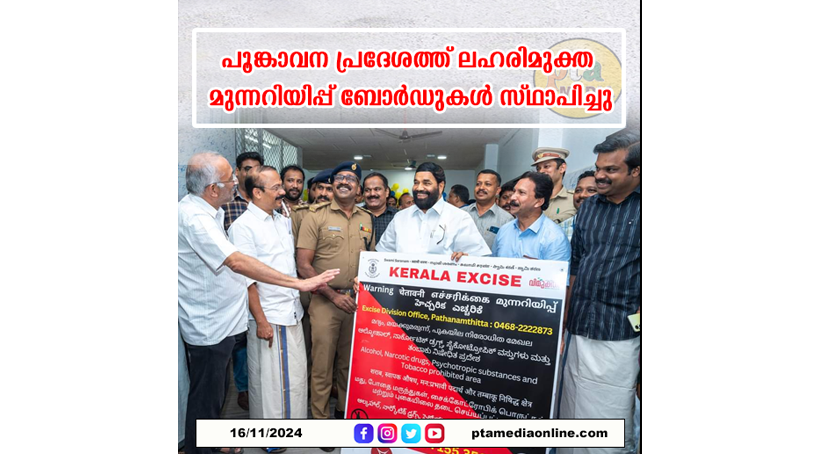 ശബരിമല: കേരള എക്സൈസ് വിമുക്തി മിഷന്റെ ആഭിമുഖ്യത്തിൽ ശബരിമല പൂങ്കാവനപ്രദേശം ലഹരിമുക്തമാണെന്ന മുന്നറിയിപ്പ് ഫലകങ്ങൾ സ്ഥാപിച്ചു. ലക്ഷ്യ ഫോർ ഫ്യൂച്ചർ ക്ലബ്ബിന്റെ സഹകരണത്തോടെപ്രധാന ഭാഗങ്ങളിൽ വിവിധ ഭാഷകളിലുള്ള 20 ബോർഡുകളാണ് സ്ഥാപിക്കുന്നത്. ബോർഡുകൾ സ്ഥാപിക്കുന്നതിന്റെ ഉദ്ഘാടനം ദേവസ്വം വകുപ്പ് മന്ത്രി വി.എൻ. വാസവൻ നിർവഹിച്ചു.
