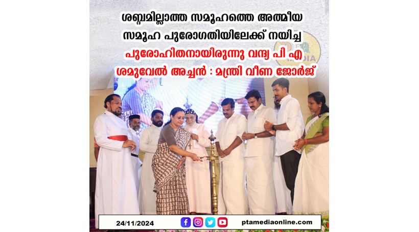 ശബ്ദമില്ലാത്ത സമൂഹത്തെ അത്മീയ സമൂഹ പുരോഗതിയിലേക്ക് നയിച്ച പുരോഹിതനായിരുന്നു വന്ദ്യ പി എ ശമുവേൽ അച്ചൻ : മന്ത്രി വീണ ജോർജ്