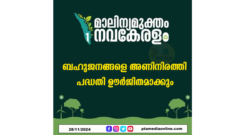 തിരുവനന്തപുരം – തദ്ദേശ സ്വയംഭരണ സ്ഥാപനങ്ങളുടെ നേതൃത്വത്തിൽ ബഹുജനങ്ങളെ അണിനിരത്തി മാലിന്യമുക്തം നവകേരളം പദ്ധതി ഊർജിതമാക്കാൻ മുഖ്യമന്ത്രി പിണറായി വിജയൻ വിളിച്ച യോഗം തീരുമാനിച്ചു. വാർഡിലെ നിർവഹണ സമിതികൾ ചേർന്നാവും ശുചീകരണ പ്രവർത്തനങ്ങൾക്ക് നേതൃത്വം നൽകുക. തദ്ദേശസ്വയംഭരണ വകുപ്പ് ജോയിന്റ് ഡയറക്ടർമാർ തദ്ദേശസ്ഥാപനങ്ങളുടെ യോഗം വിളിച്ച് നിർവഹണ സമിതികൾ കാര്യക്ഷമമായി പ്രവർത്തിക്കുന്നുവെന്ന് ഉറപ്പാക്കണം.