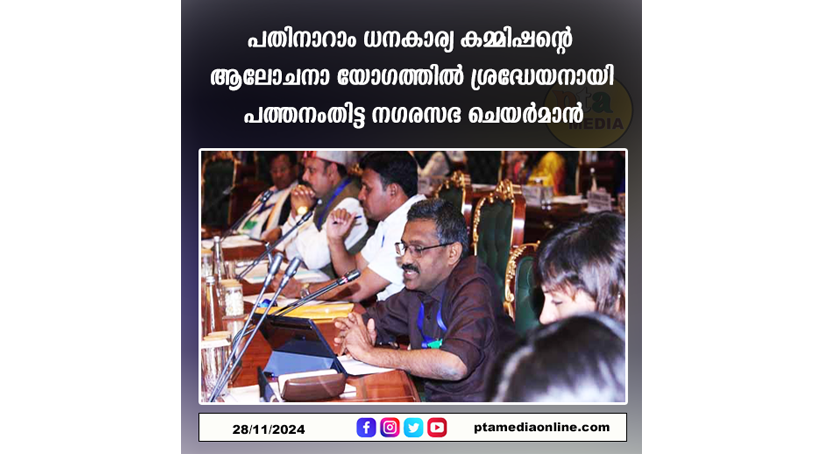 ന്യൂഡൽഹി: കേന്ദ്ര സംസ്ഥാന സർക്കാരുകളുടെ ദുരന്ത പ്രതികരണ നിധിക്ക് സമാനമായി നഗര ഭരണകൂടങ്ങൾക്കും ഫണ്ട് രൂപീകരിക്കണമെന്ന് നവംബർ 26 ന് ഡൽഹിയിൽ ചേർന്ന പതിനാറാം ധനകാര്യ കമ്മിഷന്റെ കൂടിയാലോചനാ യോഗത്തിൽ കേരളത്തെ പ്രതിനിധീകരിച്ച് പത്തനംതിട്ട നഗരസഭ ചെയർമാൻ അഡ്വ. ടി. സക്കീർ ഹുസൈൻ ആവശ്യപ്പെട്ടു.