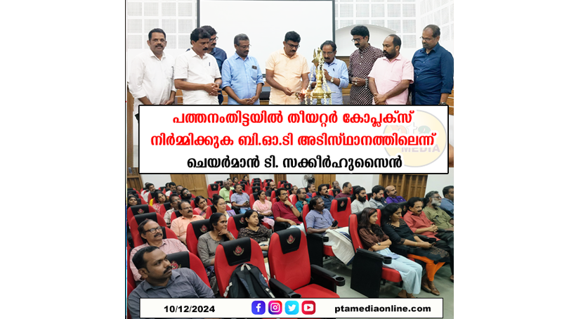 പത്തനംതിട്ട: നഗരസഭ ജില്ലാ ആസ്ഥാനത്ത് നിർമിക്കുന്ന തീയറ്റർ കോംപ്ലക്സ് പദ്ധതിക്ക് ജില്ല ആസൂത്രണ സമിതി അംഗീകാരം നൽകിയെന്ന് ചെയർമാൻ അഡ്വ. ടി. സക്കീർഹുസൈൻ. കേരള അന്താരാഷ്ട ചച്ചിത്രോത്സവത്തിന് മുന്നോടിയായി സംസ്ഥാന ചലച്ചിത്ര അക്കാദമി സംഘടിപ്പിക്കുന്ന ടൂറിങ് ടാക്കീസ് വിളംബര ജാഥയ്ക്ക് നഗരത്തിൽ നൽകിയ സ്വീകരണം ഉദ്ഘാടനം ചെയ്യുകയായിരുന്നു അദ്ദേഹം. ബിൽഡ്, ഓപ്പറേറ്റ്, ട്രാൻസ്ഫർ (ബി.ഓ.ടി) അടിസ്ഥാനത്തിലാകും തീയറ്റർ കോംപ്ലക്സ് നിർമ്മിക്കുക. ഇതിന് തയാറായി ഒരു കമ്പനി മുന്നോട്ട് വന്നിട്ടുണ്ടെന്നും അദ്ദേഹം പറഞ്ഞു. പ്രഥമ പത്തനംതിട്ട അന്താരാഷ്ട്ര ചലച്ചിത്രമേളയിൽ നിന്ന് പ്രചോദനം ഉൾക്കൊണ്ടാണ് തീയറ്റർ കോംപ്ലക്സ് നിർമിക്കാൻ തീരുമാനിച്ചത്. കൗൺസിൽ യോഗം ഒറ്റക്കെട്ടായിട്ടാണ് തീരുമാനം കൈക്കൊണ്ടതെന്നും ചെയർമാൻ പറഞ്ഞു. നഗരസഭയും ലൂമിയർ ലീഗ് ഫിലിം സൊസൈറ്റിയും ചേർന്നാണ് വിളംബരജാഥയ്ക്ക് സ്വീകരണം നൽകിയത്.