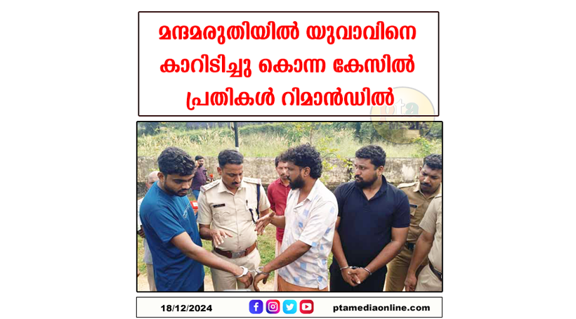 റാന്നി: മന്ദമരുതിയിൽ യുവാവിനെ കാറിടിച്ചു കൊലപ്പെടുത്തിയ കേസിലെ പ്രതികളെ കോടതി റിമാൻഡ് ചെയ്തു.റാന്നി ചേത്തയ്ക്കൽ നടമംഗലത്ത് വീട്ടിൽ കുട്ടു എന്ന് വിളിക്കുന്ന അരവിന്ദ് (30), ചേത്തയ്ക്കൽ മലയിൽ വീട്ടിൽ അജോ എം. വർഗീസ് (30), നടമംഗലത്ത് വീട്ടിൽ ശ്രീക്കൂട്ടൻ എന്ന് വിളിക്കുന്ന ഹരിശ്രീ വിജയൻ (28), നീരേറ്റുകാവ് കക്കുടുമൺ താഴത്തേക്കൂറ്റ് വീട്ടിൽ അക്സം (25) എന്നിവരാണ് റിമാൻഡിലായത്. മൂന്നു പ്രതികളുമായി ഇന്നലെ രാവിലെ പോലീസ് സംഭവ സ്ഥലത്ത് തെളിവെടുത്തു. കീക്കോഴൂരിൽ വാടകയ്ക്ക് താമസിക്കുന്ന വെട്ടിക്കൽ വീട്ടിൽ സുരേഷിന്റെ മകൻ അമ്പാടി സുരേഷിനെ (24) കൊലപ്പെടുത്തിയ രീതി പ്രതികൾ അന്വേഷണ സംഘത്തെ കാണിച്ചു കൊടുത്തു. മൂന്നു പേർ മാത്രമാണ് നേരിട്ട് കൃത്യത്തിൽ പങ്കെടുത്തത്. അക്സം ഒഴികെ ഉള്ളവരുമായിട്ടാണ് പോലീസ് തെളിവെടുപ്പിന് എത്തിയത്. അക്സം കൃത്യസ്ഥലത്തില്ലായിരുന്നുവെങ്കിലും കുറ്റകൃത്യത്തിന് പ്രേരിപ്പിച്ചുവെന്നതിനാണ് കേസിൽ ഉൾപ്പെടുത്തിയത്.