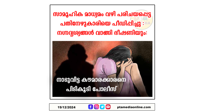 പന്തളം: ഇന്സ്റ്റഗ്രാമിലൂടെ പരിചയപ്പെട്ട് ബന്ധം സ്ഥാപിച്ച് വശീകരിച്ച് കടത്തിക്കൊണ്ടു പോയ ബലാത്സംഗം ചെയ്ത കേസില് കൗമാരക്കാരനെ പോലീസ് സാഹസികമായി പിടികൂടി. പന്തളം സ്വദേശിയായ പെണ്കുട്ടിയെ നോര്ത്ത് പറവൂര് സ്വദേശിയായ കൗമാരക്കാരനാണ് ലൈംഗിക പീഡനത്തിന് വിധേയയാക്കിയത്. നഗ്നദൃശ്യങ്ങള് അയച്ചു വാങ്ങി പിന്നീട് അത് കാട്ടി ഭീഷണിപ്പെടുത്തി അര്ദ്ധരാത്രി വീട്ടിലെത്തിയാണ് പെണ്കുട്ടിയെ പീഡിപ്പിച്ചത്. കഴിഞ്ഞ വര്ഷം ഒടുവിലാണ് സംഭവം നടന്നത്. ദൃശ്യങ്ങള് പ്രചരിപ്പിക്കുമെന്ന് ഭീഷണിപ്പെടുത്തി വീണ്ടും മൂന്നുതവണ കൂടി കുട്ടിയെ പീഡിപ്പിച്ച കൗമാരക്കാരന് ഇപ്പോള് 18 വയസ് പൂര്ത്തിയായിട്ടുണ്ട്.