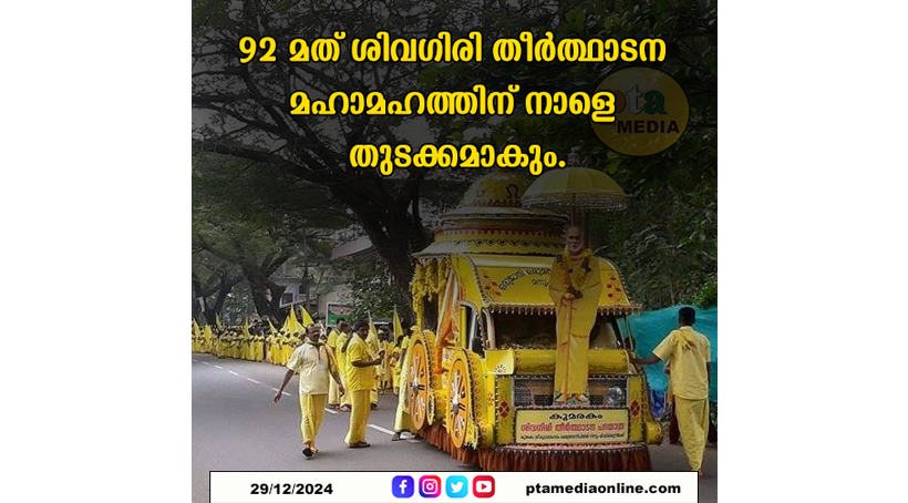 നാളെ – 30 ന് രാവിലെ 7.30 ന് ശ്രീനാരായണധർമ്മ സംഘം ട്രസ്റ്റ് പ്രസിഡൻറ് സച്ചിദാനന്ദ സ്വാമി പതാക ഉയർത്തും.