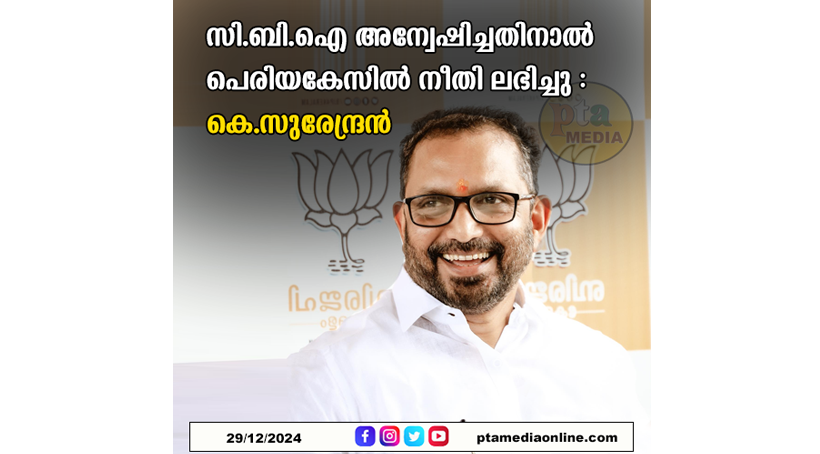 കോഴിക്കോട്: പെരിയ രാഷ്ട്രീയ ഇരട്ടക്കൊലപാതക കേസില് ഇരകളുടെ കുടുംബത്തിന് നീതി ലഭിച്ചത് സി.ബി.ഐ കേസ് അന്വേഷിച്ചത് കൊണ്ടാണെന്ന് ബിജെപി സംസ്ഥാന അദ്ധ്യക്ഷന് കെ.സുരേന്ദ്രന്. സിപിഎമ്മിന്റെ ഉന്നത നേതാക്കളുടെ പങ്ക് തെളിയിക്കാന് സി.ബി.ഐക്ക് സാധിച്ചു. സിപിഎമ്മിന്റെ നേതൃത്വം ആസൂത്രണം ചെയ്ത് നടപ്പിലാക്കിയ കൊലപാതകമായിരുന്നു പെരിയയിലേത്. ക്രൈംബ്രാഞ്ച് അന്വേഷിച്ച കേസുകളിലെല്ലാം സിപിഎം പ്രവര്ത്തകരായ പ്രതികളെ അവര് രക്ഷിച്ചിട്ടുണ്ട്. നരേന്ദ്രമോദി സര്ക്കാര് അധികാരത്തില് വന്നതിന് ശേഷമാണ് യു.ഡി.എഫ് പ്രവര്ത്തകരുടെ കൊലപാതക കേസുകളില് വരെ പ്രതികള് കുടുങ്ങി തുടങ്ങിയത്.