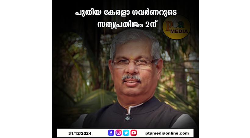 രാജേന്ദ്ര വിശ്വനാഥ് ആർലേക്കർ 2ന് രാവിലെ 10.30ന് ഗവർണറായി അധികാരമേൽക്കും.