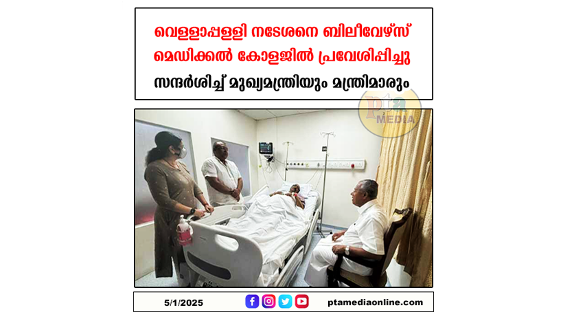 വെള്ളാപ്പള്ളി നടേശനെ ബിലീവേഴ്‌സ് മെഡിക്കൽ കോളജിൽ പ്രവേശിപ്പിച്ചു ; സന്ദർശിച്ച് മുഖ്യമന്ത്രിയും മന്ത്രിമാരും :