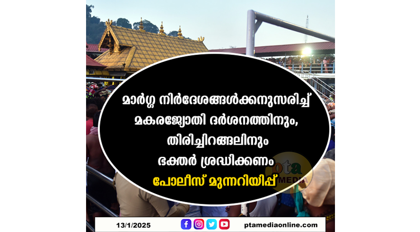 മാർഗ്ഗ നിർദേശങ്ങൾക്കനുസരിച്ച് മകരജ്യോതി ദർശനത്തിനും, തിരിച്ചിറങ്ങലിനും ഭക്തർ ശ്രദ്ധിക്കണം – പോലീസ് മുന്നറിയിപ്പ്
