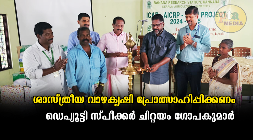 അടൂർ – ശാസ്ത്രീയ വാഴകൃഷി പ്രോത്സാഹിപ്പിച്ച് മൂല്യവർദ്ധിത ഉതപ്ന്നനിർമാണത്തിലൂടെ സാമ്പത്തികാഭിവൃദ്ധി കൈവരിക്കുന്നതിനുള്ള പദ്ധതികൾക്ക് മുൻഗണന നൽകണമെന്ന് ഡെപ്യൂട്ടി സ്പീക്കർ ചിറ്റയം ഗോപകുമാർ. പട്ടികജാതി- പട്ടികവർഗ വിഭാഗത്തിനായി പറക്കോട് ബ്ലോക്ക് പഞ്ചായത്തിൽ കണ്ണാറ വാഴഗവേഷണ കേന്ദ്രത്തിന്റെ സഹായത്തോടെ നടപ്പാക്കുന്ന ശാസ്ത്രീയ വാഴകൃഷി പദ്ധതി ഉദ്ഘാടനം ചെയ്യുകയായിരുന്നു അദ്ദേഹം. വാഴതൈ, വളങ്ങൾ എന്നിവയും കീടനാശിനി ഉപകരണങ്ങളും വിതരണം ചെയ്തു. ബ്ലോക്ക് പഞ്ചായത്ത് പ്രസിഡന്റ് ആർ. തുളസീധരൻ പിള്ള അധ്യക്ഷനായി. വാഴ ഗവേഷണകേന്ദ്രം അസിസ്റ്റന്റ് പ്രൊഫസർ ഡോ. ഗവാസ് രാഗേഷ്, കൃഷിവകുപ്പ് അസിസ്റ്റന്റ് ഡയറക്ടർ റോണി വർഗീസ്, ഡോ. എം. ഡിക്ടോജോസ് എന്നിവർ സംസാരിച്ചു.