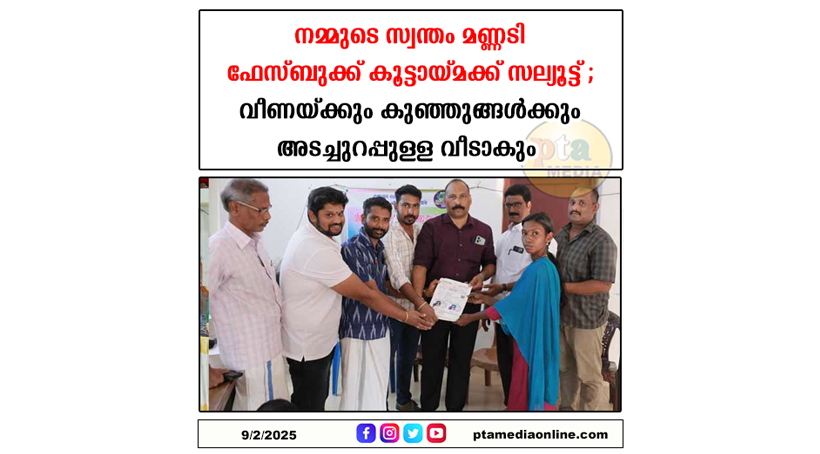 അടൂർ: വീണയ്ക്കും പറക്കമുറ്റാത്ത രണ്ട് കുഞ്ഞുങ്ങൾക്കും വീടെന്ന സ്വപ്നം പൂവണിയുന്നു. കടമ്പനാട് പഞ്ചായത്ത് എട്ടാം വാർഡിൽ ഒഴുകുപാറ കോളനിയിൽ ഭർത്താവ് ഉപേക്ഷിച്ച് ബന്ധുവിന്റെ ഭൂമിയിൽ വാസയോഗ്യമല്ലാത്ത ടാർപോളിൽ ഷെഡിൽ കഴിഞ്ഞിരുന്ന അരക്കുംകാലായിൽ വീണയ്ക്കും കുഞ്ഞുങ്ങൾക്കും അഞ്ചു സെന്റ് ഭൂമി വാങ്ങി നൽകി നമ്മുടെ സ്വന്തം മണ്ണടി വാട്സ്ആപ്പ് ആൻഡ് ഫെയ്സ്ബുക്ക് കൂട്ടായ്മ. സാമൂഹിക പ്രവർത്തകനായ ഫാ. റിഞ്ചു പി കോശി വീണയ്ക്ക് വീടൊരുക്കും. 2009 ൽ കന്നിമല ക്വാറി സമരത്തിന് ശക്തി പകരുവാൻ തുടങ്ങിയ നവമാധ്യമ കൂട്ടായ്മ കോവിഡ് കാലത്ത് ഓൺലൈൻ പഠന സംവിധാനം ഇല്ലാത്ത നിർദ്ധനരായ 20 കുട്ടികൾക്ക് എൽ.സി.ഡി ടിവിയും ഡിറ്റിഎച്ച് സംവിധാനവും ഒരുക്കി നൽകിയും കന്റോൺമെന്റ് സോണിൽ താമസിച്ചിരുന്ന 500 തൊഴിലാളി കുടുംബങ്ങൾക്ക് ഭക്ഷ്യവസ്തുക്കൾ എത്തിച്ച് ജനശ്രദ്ധ നേടിയിരുന്നു. സ്വന്തം വീടും പുരയിടവും വാടകയ്ക്ക് കൈക്കുഞ്ഞുമായി എത്തിയ കുടുംബത്തിന് എഴുതി നൽകിയ ചന്ദ്രമതിയമ്മയ്ക്ക് ഓണക്കോടിയും കാൽ ലക്ഷത്തിൽപ്പരം രൂപയും നൽകി ആദരിച്ചു.