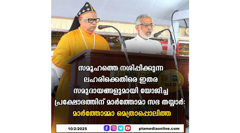സമൂഹത്തെ നശിപ്പിക്കുന്ന ലഹരിക്കെതിരെ ഇതര സമുദായങ്ങളുമായി യോജിച്ച പ്രക്ഷോഭത്തിന് മാർത്തോമാ സഭ തയ്യാർ: മാർത്തോമ്മാ മെത്രാപ്പൊലിത്ത