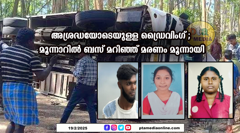 ഇടുക്കി – ശ്രദ്ധിച്ചിരുന്നെങ്കിൽ ഒഴിച്ചുകൂടാമായിരുന്ന ഒരു അപകടം. അമിതവേഗം ആയിരുന്നു ബസ് അപകടത്തിന് കാരണമെന്ന് ദൃക്സാക്ഷികൾ പറയുന്നു. ഇത്തരം വളവുകളിൽ വേഗത കുറച്ചു മാത്രമേ ഏത് വാഹനമായാലും ഓടിക്കാവൂ. ഇനി ആരോട് പറഞ്ഞിട്ടെന്താ കാര്യം. വട്ടവടയിലേക്കു പോകുന്ന റോഡിൽ എക്കോ പോയിന്റിനു സമീപം ടൂറിസ്റ്റ് ബസ് മറിഞ്ഞുത്. തേനി മെഡിക്കല് കോളജിലേക്ക് കൊണ്ടുപോയ വിദ്യാര്ത്ഥിയാണ് അവസാനം മരിച്ചത്. നാഗര്കോവില് സ്കോട്ട് ക്രിസ്ത്യന് കോളേജിലെ ബിഎസ്സി കമ്പ്യൂട്ടര് സയന്സ് വിദ്യാര്ത്ഥികളാണ് മരിച്ചത്. ഒട്ടേറെപ്പേർക്ക് ഗുരുതരമായി പരുക്കേറ്റെന്നാണ് വിവരം. അമിതവേഗതയാണ് അപകടത്തിന് കാരണമെന്ന് ദൃക്സാക്ഷികൾ പറയുന്നു. കന്യാകുമാരിയിൽ നിന്നുള്ള വിദ്യാർത്ഥി സംഘമാണ് അപകടത്തിൽപ്പെട്ടത്. 37 വിദ്യാര്ഥികളും അധ്യാപകരും ഉള്പ്പെടെ 43 പേര് ബസ്സില് ഉണ്ടായിരുന്നു. ആദിക, വേണിക എന്നീ വിദ്യാര്ത്ഥികള് സംഭവസ്ഥലത്ത് തന്നെ മരിച്ചു.