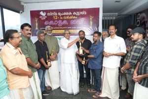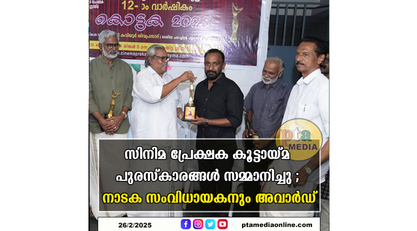 പത്തനംതിട്ട : ജില്ലയിലെ സിനിമ പ്രേക്ഷക കൂട്ടായ്മയുടെ 12 മത് വാർഷികത്തോടനുബന്ധിച്ച് വിവിധ രംഗങ്ങളിലെ പ്രമുഖകർക്ക് നൽകുന്ന പുരസ്കാരങ്ങൾ പത്തനംതിട്ട ട്രിനിറ്റി മൂവി മാക്സിൽ നടന്ന പ്രൗഢ ഗംഭീരമായ ചടങ്ങിൽ ദേശീയ ചലച്ചിത്ര പുരസ്കാര ജേതാവും, സംവിധായകനുമായ കവിയൂർ ശിവപ്രസാദ് വിതരണം ചെയ്തു. നാടക സംവിധായകനായ കലാനിലയം അനന്ത പദ്മനാഭനെയും പുരസ്കാരത്തിനായി പരിഗണിച്ചത് വേറിട്ടൊരു അംഗീകാരമായി. നാടക സെറ്റിൽ സിനിമ നിർമ്മിച്ച പ്രഗത്ഭനായ കലാനിലയം കൃഷ്ണൻ നായർ ( തനിനിറം കൃഷ്ണൻ നായർ ) മകനാണ് കലാനിലയം അനന്തപദ്മനാഭൻ. ഒട്ടേറെ സിനിമാ നടീ നടന്മാരുടെ ആദ്യ അഭിനക്കളരിയായിരുന്ന കലാനിലയം നാടക സംഘവുമായി അച്ഛന്റെ കൈപിടിച്ച് നടന്നു തുടങ്ങിയ അദ്ദേഹത്തിൻറെ പ്രയാണം. പ്രതിസന്ധികളെയൊക്കെ അതിജീവിച്ചു 50 വർഷത്തിലേറെയായുള്ള അദ്ദേഹത്തിൻറെ ജീവിതത്തിനു തന്നെ പത്തനംതിട്ടയിൽ നിന്ന് കിട്ടിയ അംഗീകാരമായി ഈ പുരസ്കാരം. ഇപ്പോൾ പത്തനംതിട്ടയിൽ നടന്നുവരുന്ന രക്തരക്ഷസ് എന്ന കലാനിലയം നാടകം മാർച്ച് 2 വരെ പ്രദർശനം ഉണ്ടായിരിക്കും. അടുത്ത ക്യാമ്പ് തൃപ്പൂണിത്തുറ പുതിയകാവ് ക്ഷേത്രമതാനത്താണ്.