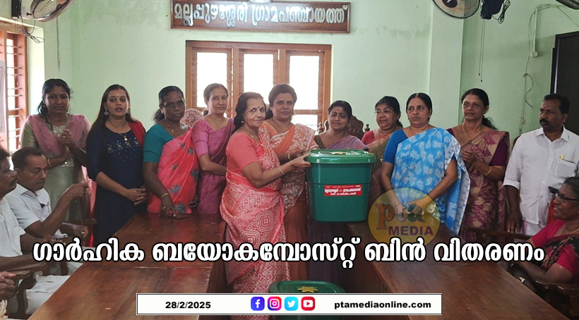 ആറന്മുള – മാലിന്യസംസ്കരണ പ്രവർത്തനങ്ങളുടെ ഭാഗമായി മല്ലപ്പുഴശ്ശേരി ഗ്രാമപഞ്ചായത്തിൽ ഗാർഹിക ബയോകമ്പോസ്റ്റ് ബിൻ വിതരണം ചെയ്തു. 13 വാർഡുകളിൽ നിന്നായി 80 ഗുണഭോക്താക്കൾക്കാണ് ലഭിച്ചത്. വിതരണോദ്ഘാടനം പഞ്ചായത്ത് പ്രസിഡന്റ് മിനി ജിജു ജോസഫ് നിർവഹിച്ചു. വൈസ് പ്രസിഡന്റ് വത്സല വാസു, ആരോഗ്യ സ്റ്റാൻഡിങ് കമ്മിറ്റി ചെയർമാൻ മേഴ്സി സമുവൽ, വികസന കാര്യ സ്റ്റാൻഡിങ് കമ്മിറ്റി ചെയർമാൻ അശ്വതി പി നായർ മറ്റു പഞ്ചായത്ത് അംഗങ്ങൾ എന്നിവർ പങ്കെടുത്തു.
